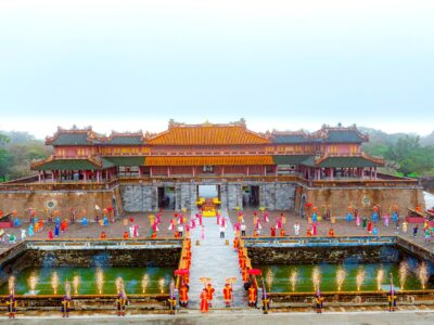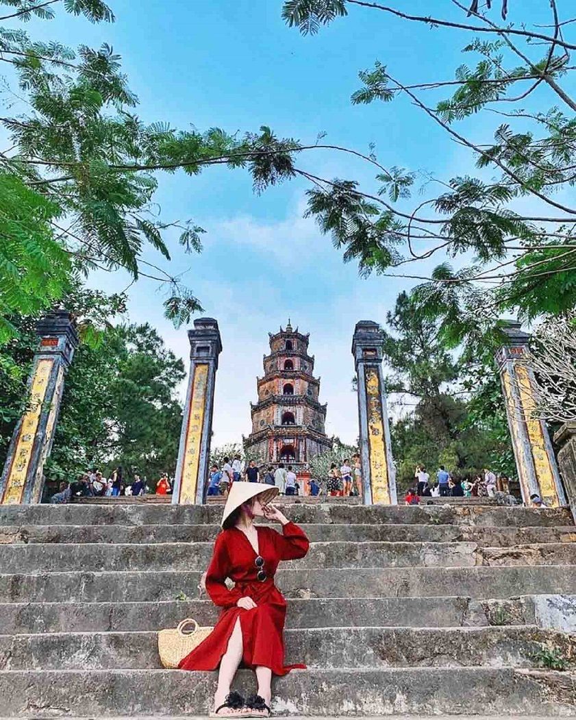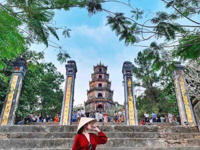 – Chiều: Tham quan Đại Nội (Hoàng Cung của 13 vị vua triều Nguyễn, triều đại phong kiến cuối cùng của Việt Nam: Ngọ Môn, Điện Thái Hoà, Tử Cấm Thành, Thế Miếu, Hiển Lâm Các, Cửu Đỉnh) và Chùa Thiên Mụ cổ kính, xây dựng từ những năm đầu của thế kỉ XVII.