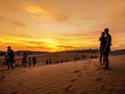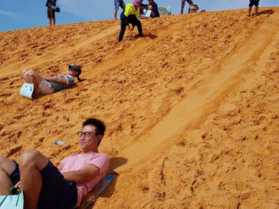 Activities to Experience at Red Sand Dunes in Mũi Né by Jeep Tour: Watch the sunrise or sunset – The Red Sand Dunes are famous for their stunning sunrises and sunsets, creating a romantic atmosphere. Take amazing photos – The unique red sand color provides a spectacular desert-like backdrop for your pictures. Sandboarding – Rent a sandboard and enjoy the thrill of sliding down the dunes. Local people offer sandboard rentals for 30,000-50,000 VND per board. Relax and enjoy the scenery – Immerse yourself in the untouched beauty of nature and breathe in the fresh air. Experience local life – This is a popular spot for locals, especially children, who often come to sandboard and play. Explore the coastal roads – The Jeep tour will take you along the breathtaking coastal roads of Mũi Né.