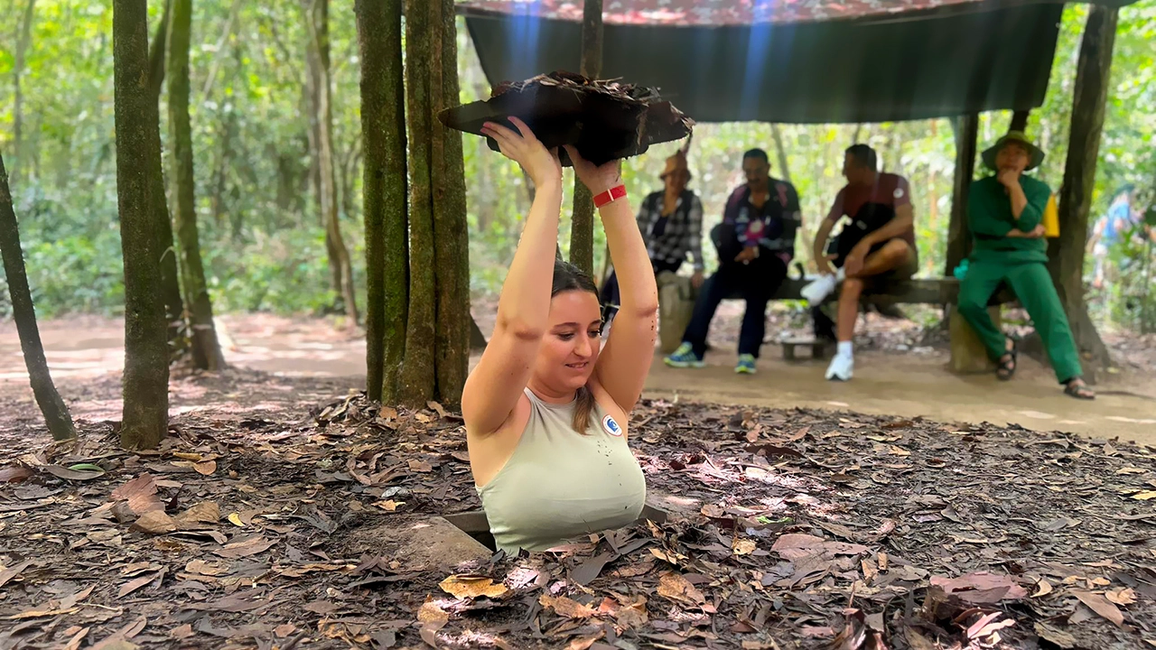 The famous Cu Chi tunnels are a network of underground tunnels in Ho Chi Minh City. The tunnels were used as a military base for resistance to US forces during the Vietnam War and often used as hiding spots or spy activities.